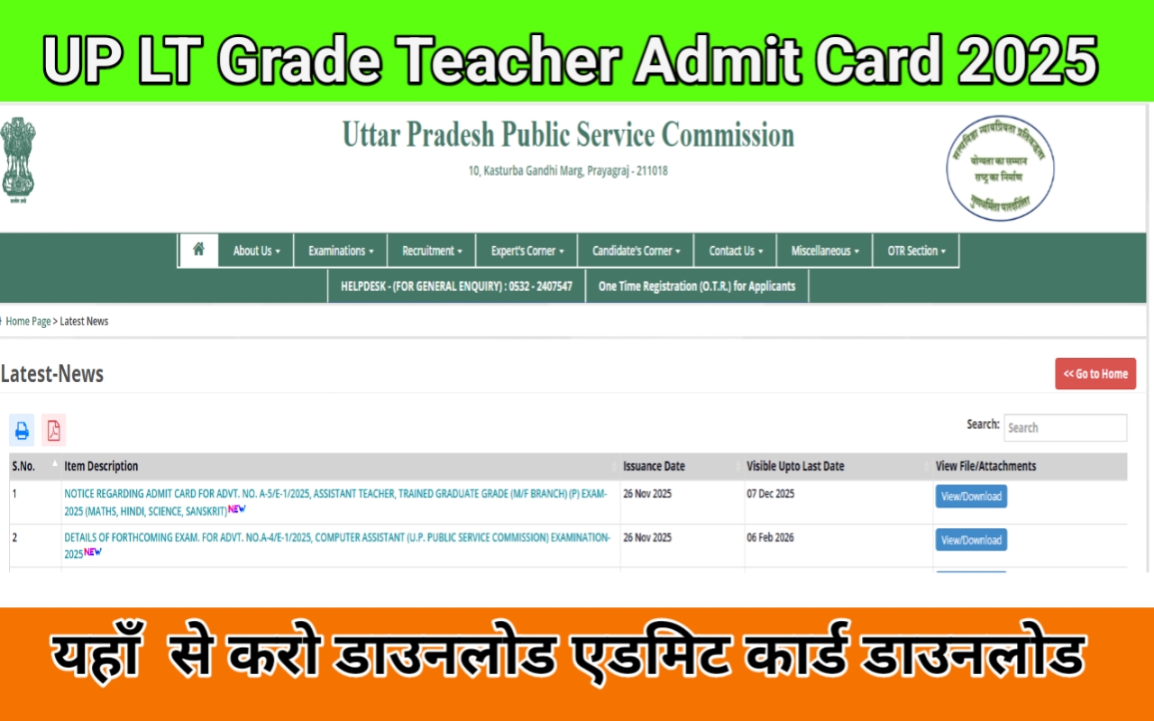 UP LT Grade Teacher Admit Card 2025 OUT: यूपीपीएससी एलटी ग्रेड टीचर एडमिट कार्ड uppsc.up.nic.in पर जारी,
