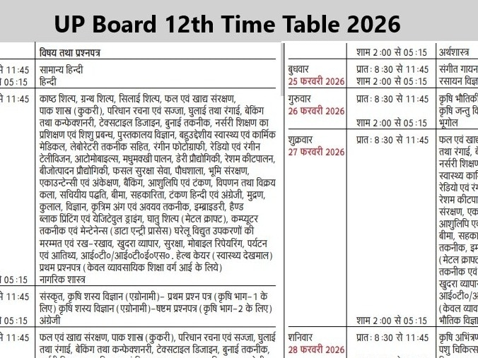 UPMSP UP Board 10th Time Table 2026: यूपी बोर्ड 10वीं 12वीं परीक्षा 2026 की डेटशीट ( UPMSP UP Board 10th Date Sheet 2026 ) जारी कर दी गई है। दोनों परीक्षाएं एक साथ 18 फरवरी 2026 से प्रारंभ होकर 12 मार्च 2026 को समाप्त होंगी। बोर्ड सचिव भगवती सिंह के अनुसार, परीक्षाएं पूर्ववत दो पालियों में होंगी। पहली पाली सुबह 8:30 से 11:45 बजे तक व दूसरी पाली दोपहर 2:00 से शाम 5:15 बजे तक होगी। हाईस्कूल की परीक्षा 18 फरवरी को हिंदी विषय से शुरू होकर 12 मार्च को कृषि विषय के साथ समाप्त होगी। वहीं, इंटरमीडिएट की परीक्षा 18 फरवरी को सामान्य हिंदी से आरंभ होकर 12 मार्च को कंप्यूटर विषय की परीक्षा के साथ संपन्न होगी। बोर्ड के अनुसार, इस बार विद्यार्थियों को मुख्य विषयों की तैयारी के लिए परीक्षा के दौरान पर्याप्त अंतराल मिलेगा। हाईस्कूल और इंटरमीडिएट दोनों की परीक्षाएं कुल 15 कार्य दिवसों में पूरी की जाएंगी।